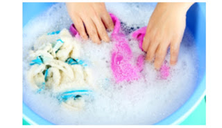 Soaps, when used with hard water, does not lather or produce foam easily because of the formation of a curdy precipitate or scum. This scum is created when soaps react with the calcium and magnesium ions present in hard water.