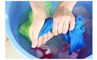 Vegetable stain turns reddish-brown when washed with soap because vegetable stain contains turmeric.